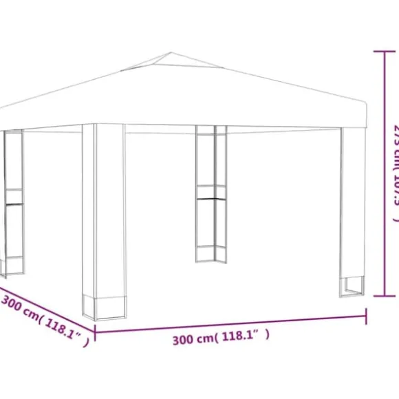 Paviljongen är tillverkad i pulverlackerat stål. Därför är den väldigt stadig och hållbar. Vår paviljong har dubbla tak. Dessutom är överdraget tillverkat i 100 % polyester med PA-beläggning som är väderbeständigt. Du kan ta av det för tvätt eller förvaring när det inte används.