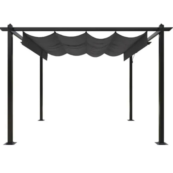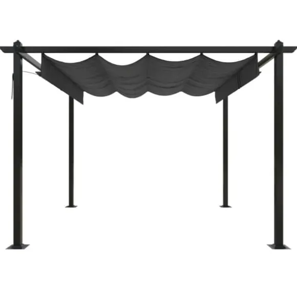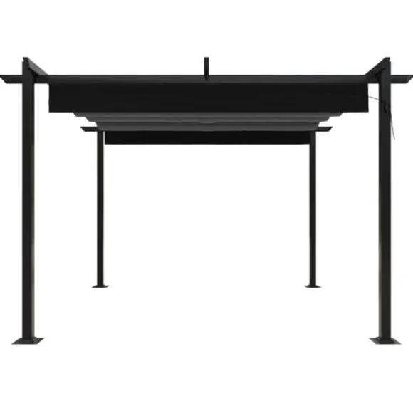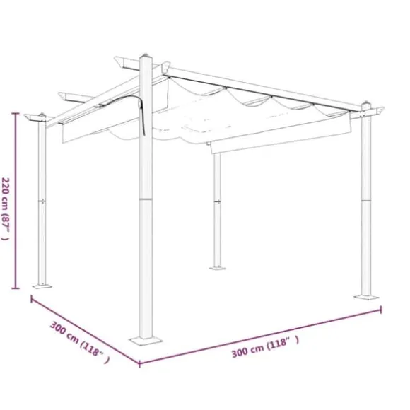 Paviljongen är tillverkad med en pulverlackerad stålram som gör den hållbar och stadig. Denna paviljong är utrustad med ett infällbart PA-belagt tak, vilket är UV- och vattenbeständigt. Du kan enkelt rotera och justera taket till det perfekta läget genom att helt enkelt använda handstången. Öppna den när du vill njuta av solen och stäng för skugga eller skydd. Paviljongen kommer bli ett perfekt val för dina utomhusaktiviteter.