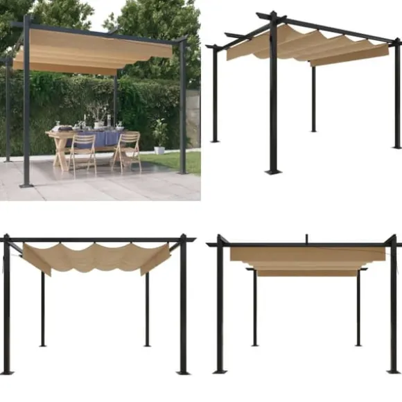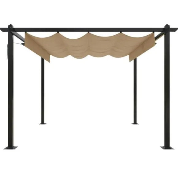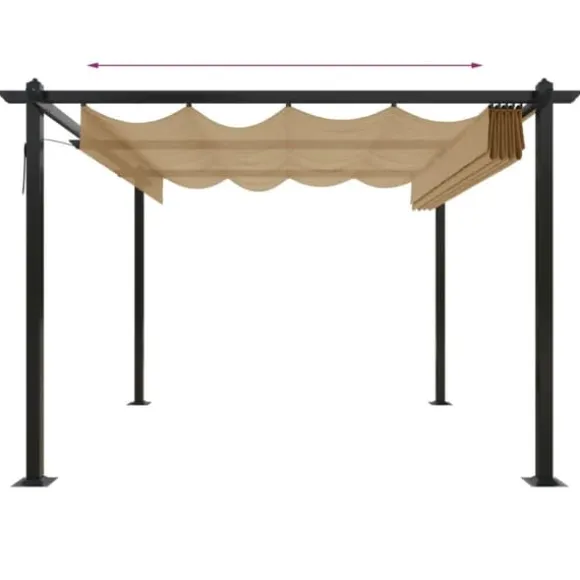 Paviljongen är tillverkad med en pulverlackerad stålram som gör den hållbar och stadig. Denna paviljong är utrustad med ett infällbart PA-belagt tak, vilket är UV- och vattenbeständigt. Du kan enkelt rotera och justera taket till det perfekta läget genom att helt enkelt använda handstången. Öppna den när du vill njuta av solen och stäng för skugga eller skydd. Paviljongen kommer bli ett perfekt val för dina utomhusaktiviteter.