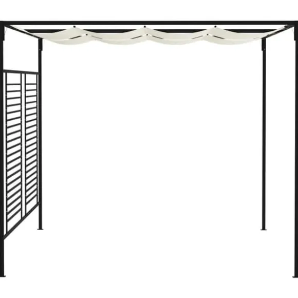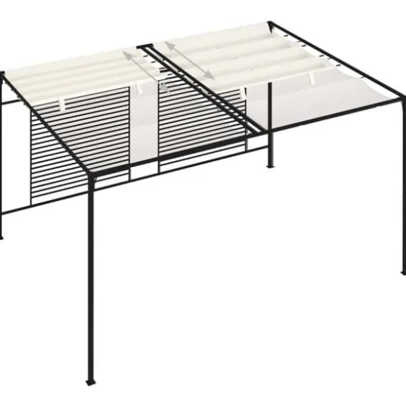 Denna paviljong har en massiv stålkonstruktion som gör den stark och stabil för utomhusbruk. Det infällbara taket skyddar mot regn och den gassande solen så att du kan ha det trevligt utomhus utan att oroa dig.