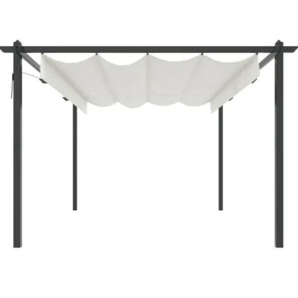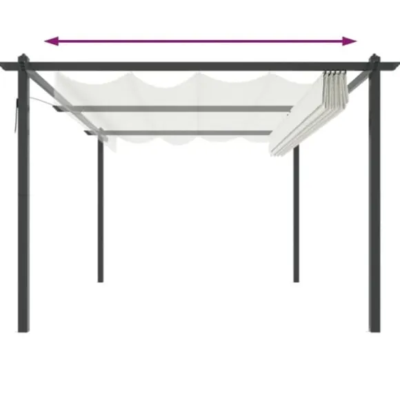 Paviljongen är tillverkad med en pulverlackerad stålram som gör den hållbar och stadig. Denna paviljong är utrustad med ett infällbart PA-belagt tak, vilket är UV- och vattenbeständigt. Du kan enkelt rotera och justera taket till det perfekta läget genom att helt enkelt använda handstången. Öppna den när du vill njuta av solen och stäng för skugga eller skydd. Paviljongen kommer bli ett perfekt val för dina utomhusaktiviteter.