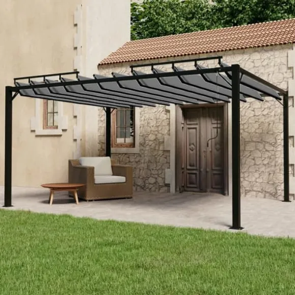 Detta lusthus är tillverkat av PA-belagt tyg, vatten- och smutsavvisande. Den starka aluminiumramen gör lusthuset robust och mycket hållbart. Detta lusthus är utrustat med ett justerbart lamelltak. Du kan enkelt rotera och justera persiennerna till idealisk position genom att helt enkelt skaka handstången. Öppna dem när du vill njuta av solen och stäng dem igen för skugga eller skydd mot lite regn. Detta lusthus är ett perfekt val för dina utomhusaktiviteter.