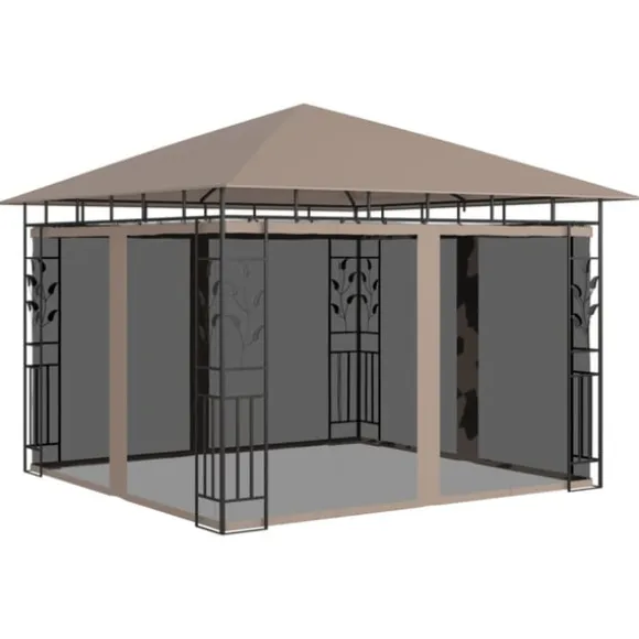 Ramen har en robust stålkonstruktion som gör den hållbar och stadig. Solskyddet i tyg skyddar dig från den gassande solen så att du kan njuta mer av dina utomhusaktiviteter. Detta tält med myggnät skyddar dig mot insekter och mygg. Därför kan du njuta av din lediga tid utomhus utan att störas. Dessutom kan paviljongen monteras snabbt. Paviljongen är enkel att montera.