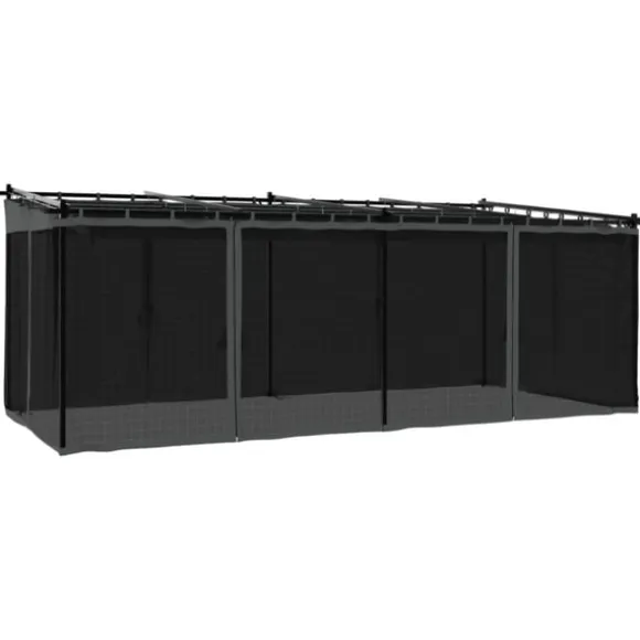 - Robust och hållbar ram: Ramen är tillverkad av rostbeständigt stål och uppskattas för långvarig utomhusbruk. Den garanterar stabilitet med solida balkar som stödjer taket och förstärkta stativ.