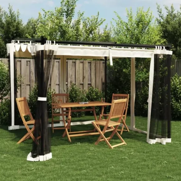 - Robust och hållbar ram: Ramen är tillverkad av rostbeständigt stål och uppskattas för långvarig utomhusbruk. Den garanterar stabilitet med solida balkar som stödjer taket och förstärkta stativ.
