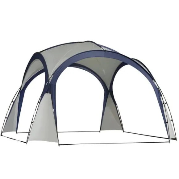 Rymligt kupoltält i blått med UV-skydd och snabb monteringNjut av utelivet i bekväm skugga: detta kupolformade tält i blå färg skapar snabbt en skyddad yta på ca 3,5 × 3,5 m. 190T polyester med PU-beläggning ger UV-skydd och står emot lätt regn, medan glasfiberstänger ger stabilitet. Perfekt för trädgård, marknader, sport, grillfester och evenemang.
