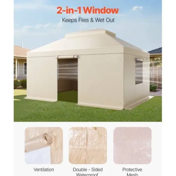 Skydda ditt lusthus under vintern med detta vädertåliga, dubbeltoppade lusthustak, utformat för att erbjuda fullständig inneslutning och pålitligt skydd mot tuffa väderförhållanden. Tillverkat av högdensitets, vattentätt PE-material, har det sidoväggar och fönster för ventilation och ljus, vilket säkerställer att ditt lusthus och dina utomhusmöbler förblir trygga och bekväma året runt. Enkelt att installera och ta bort, detta överdrag ger ökad stabilitet med en breddad bas och smidig åtkomst via en rymlig dörr.