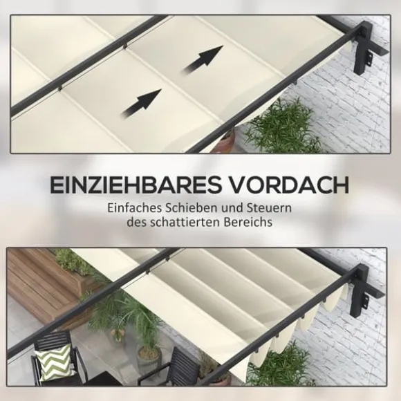 Denna väggmonterade paviljong har ett utdragbart tygtak som låter dig justera mängden skugga för bekväm utomhusmiddag, socialt umgänge och avkoppling. Dess hållbara metallram och polyester-tak med dräneringshål ger stabilitet och skydd mot UV-strålar och regn.