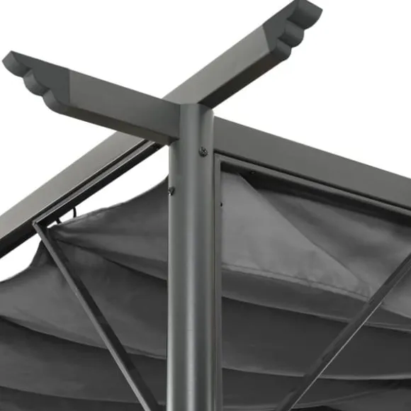 Denna mångsidiga pergola kommer att bli ett dekorativt tillskott till trädgården eller andra utomhusplatser. Tack vare dess infällbara taksystem passar denna pergola perfekt för att erbjuda skugga från solen och skydd från regn.