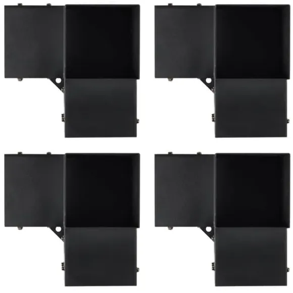 Ökad hållbarhet: Tillverkat av 2 mm tjocka kolfiberstålplåtar med svart pulverlackering för korrosionsbeständighet. Den förstärkta 90°-stödkonstruktionen förhindrar brott och deformation och säkerställer stabilitet. Det fullständiga designet skyddar stolparna mot erosion från regnvattnet. Dräneringshål i basen förlänger livslängden.