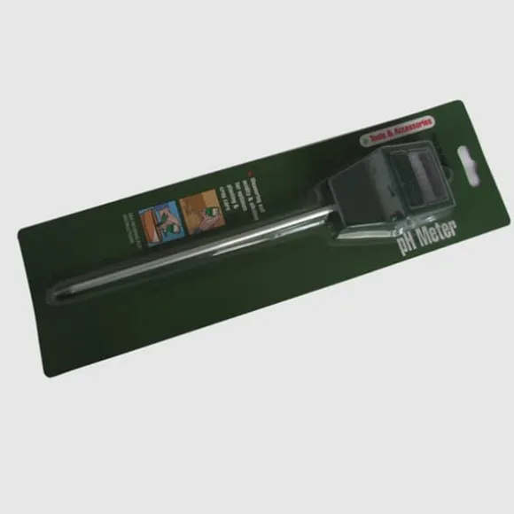 Denna pH-mätare för jord är lätt att använda och kräver inga batterier. Den mäter jordens surhetsgrad effektivt, med ett intervall från pH 3 till 10. Instrumentet fungerar genom att mäta en kemisk reaktion mellan jord och vatten, vilket gör att mätaren fungerar korrekt endast i jord.