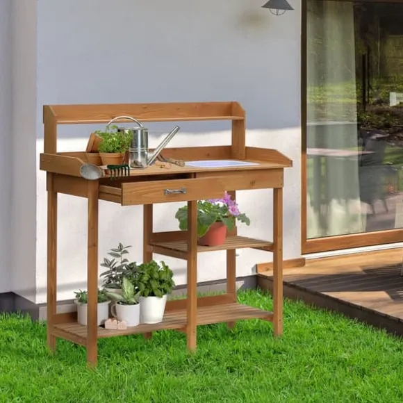 – RYGGVÄNLIG: Detta blomsterbord har en rymlig arbetsyta som är utrustad med ett praktiskt handfat. Tack vare den bekväma arbetshöjden på ca 90 cm kan du arbeta bekvämt och skona ryggen.