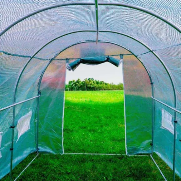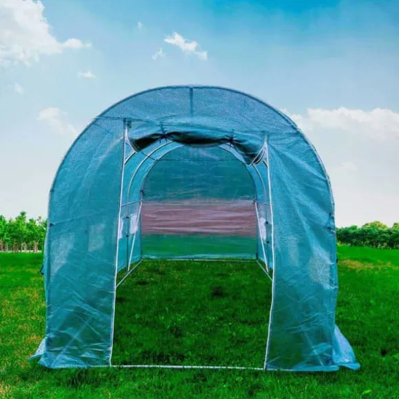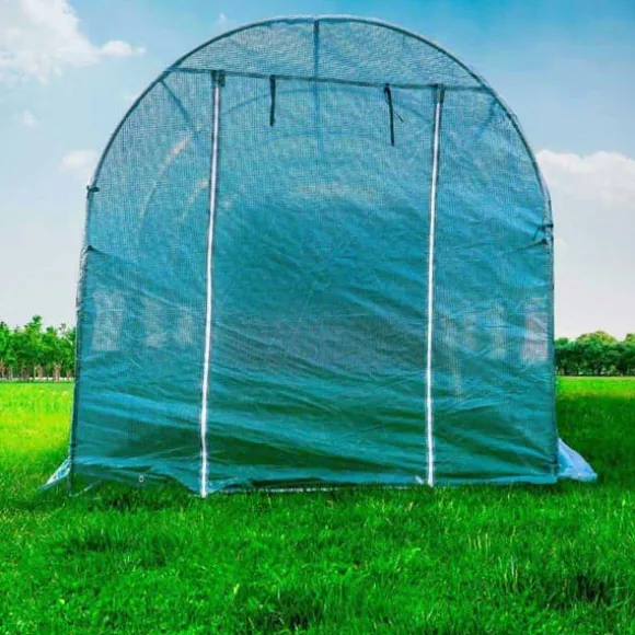 Trädgårdstomten kommer att vara PNI SG500 storlek 457 * 210 * 210 cm. Växthuset har rullfönster, fönstren är försedda med myggnät för att skydda grödor från skadedjur och insekter.Perfekt för effektiv odling:PNI SG500 trädgårdssolarium är perfekt för effektiv odling av växter, grönsaker, frukter, blommor. Väderbeständighet gör att den idealiskt isolerar grödor. Idealisk för att skydda växter från kyla, regn, hagel, vind och frost. Myggnätet skapar ett utomhusflöde. Fönstren ger tillgång till solljus och stålramen säkerställer växthusets stabilitet och styrka.Särskilt solid struktur:Solariet har en mycket solid struktur, gjord av stål. Det gröna PP-nätet som ingår i foliens struktur stärker den och skyddar mot brott och mekaniska skador. Solariets funktionalitet förbättras av en stor rulldörr. Dessutom är det en produkt som är väldigt lätt att installera och lika lätt att placera. Strukturen är enkel men samtidigt robust.Odlingsarea på 10 m²:PNI SG500 trädgårdssolarium är också billigare än fasta växthus. Den är 457 centimeter lång och 210 centimeter bred, därför erbjuder den en odlingsyta på 10 m².När det väl är placerat på strukturen måste ändarna av locket (presenning / folie) grävas ner för att förhindra att vinden välter solariet eller att vatten infiltrerar, samtidigt som växthuseffekten optimeras.PNI SG500 trädgårdssolarium kommer att erbjuda utmärkta förutsättningar för odling i hemträdgårdar. Det är en bekväm lösning för människor som vill njuta av skörden.Specifikationer:Öppningstyp: framAnvändbar yta: 10 mpStruktur: StålMaterial: PolyetenStorlek: 4570 x 2100 x 2100 mmPaketet innehållerMetallisk struktur: JaCanvas: Ja
