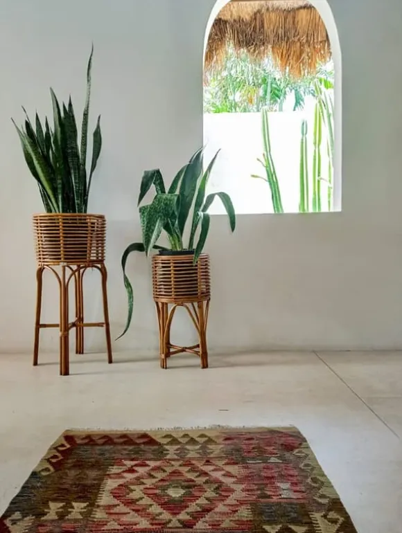 Pollie M Rattan Flower Stand – Caramel Boho Style Pollie M Rattan Flower Stand i en varm kola nyans är en perfekt lösning för att visa upp växter i ditt hem. Handgjorda av högkvalitativ rotting, ger detta växtställ i Boho-stil naturlig charm och värme till varje interiör. PRODUKTFUNKTIONER: Handgjorda: Varje blomsterställ är noggrant handgjorda, vilket garanterar unikhet och utmärkt kvalitet. Stabilitet och säkerhet: Blomstativet har en stabil bas som säkerställer säkerheten för dina växter. Boho-stil: Den varma nyansen av karamell i naturligt rottingmaterial passar in i de senaste ekologiska trenderna och bringar harmoni med naturen. TRENDER OCH INSPIRATIONER: Under de kommande säsongerna dominerade av ekologiska inspirationer blir möbler gjorda av naturliga material, som rotting, ett nyckelelement i inredningsdesign. Naturliga jordnära färger, inklusive karamellrotting, matchar perfekt Boho-stilen, som fokuserar på harmoni, naturlighet och mysighet. UNIK PRODUKT: Varje produkt är handgjord och kan skilja sig något från bilderna vad gäller färg, detaljer och mått. Måtten kan variera med 1-3 cm beroende på tillverkningsprocessen. TEKNISKA DATA: Material: Naturrotting Mått: Handgjorda kan orsaka skillnader i dimensioner (1-3 cm). Pollie M rotting växtställ är ett bra sätt att framhäva charmen med dina växter och skapa ett vänligt, varmt utrymme i ditt hem.