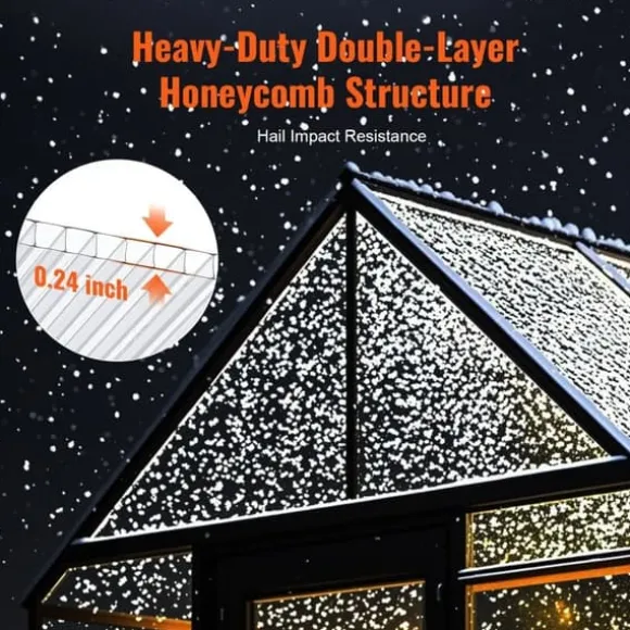 Med 80 % ljusgenomsläpplighet tillåter dessa takpaneler gott om ljus samtidigt som de blockerar 98 % av UV-strålar, vilket förhindrar överhettning och stödjer stabila, växtvänliga temperaturer året runt. Denna hållbara konstruktion i kraftig dubbellagers bikakedesign, med en vikt på ≥0,9 kg/m² och 0,24-tums tjocklek, motstår skador från hagel och tunga farliga föremål, vilket säkerställer långvarigt skydd.