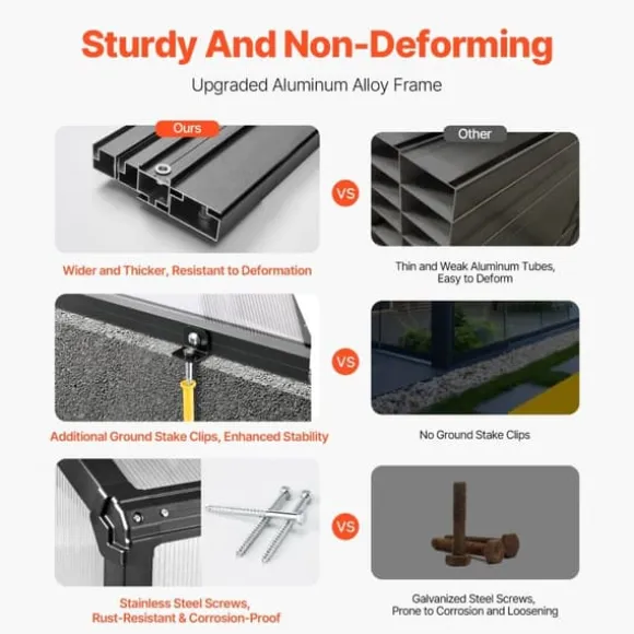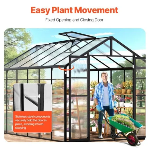 Vårt växthus i polykarbonat med en förstärkt aluminiumram är en perfekt lösning för att odla växter på ett hållbart och säkert sätt. Med en rad imponerande funktioner är detta växthus både funktionellt och visuellt tilltalande.