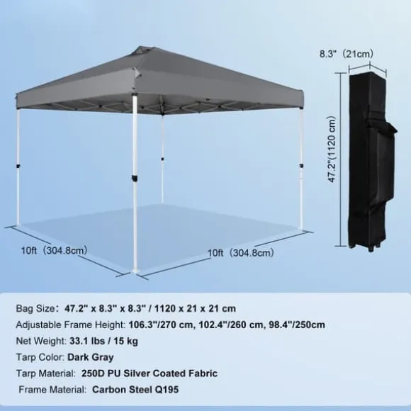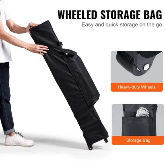 Stort och bekvämt pop-up-tält: Har du alltid drömt om ett temporärt festutrymme? Gör dig redo att njuta av 9 kvadratmeter för en fest på bara 1 minut! Vårt pop-up-tält mäter 304,8 x 304,8 cm och har tre justerbara höjder, med en maximal innerväggshöjd på 2,7 m. Det rymliga designen rymmer bekvämt 6-8 personer, vilket gör det till den perfekta platsen för att ge skugga och imponera på en stor publik.