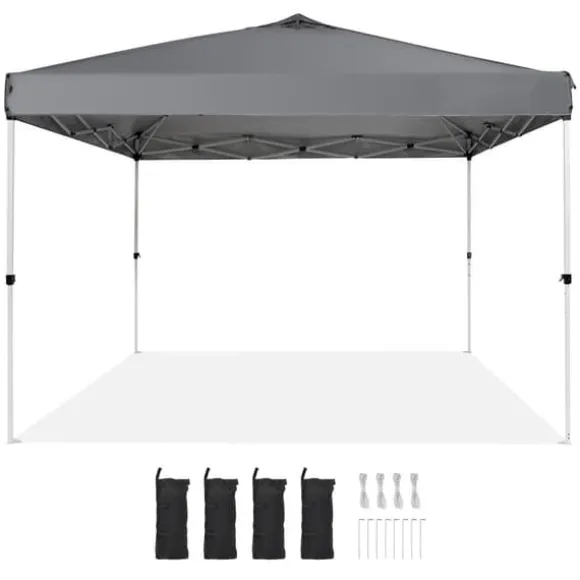 Enkel montering: Att sätta upp vårt 304,8 x 304,8 cm tält är en barnlek. Ta helt enkelt det förmonterade ställningen ur väskan, öppna det, lägg tältet över ställningen och fäll ut benen. Sandsäckar och tältspik ingår för att säkerställa maximal stabilitet. Detta tält är perfekt för utomhusunderhållning, inklusive camping, picknick och kommersiella evenemang.