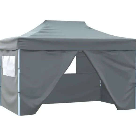 Det här kraftiga pop-up-tältet är extremt slitstarkt och är tillverkat av kraftigt pulverlackerat stål. Taket är gjort av oxfordtyg med PVC-beläggning och är vattentätt och UV-beständigt. Tältet har fyra sidoväggar, varav en har en ingång med dragkedja för enkel åtkomst. Tältet är hopfällbart för enkel förvaring och transport. Partytältet är lätt att installera med sitt medföljande fästrep och markspett.