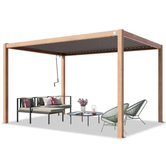 Med sitt integrerade vattendräneringssystem och högkvalitativa aluminium- och stålmaterial är du garanterad en pergolaupplevelse året runt. Taklamellerna kan justeras när som helst med en smidig vev – och tack vare sin moderna look kommer denna premiumpergola också att vara ett vackert blickfång i din trädgård!