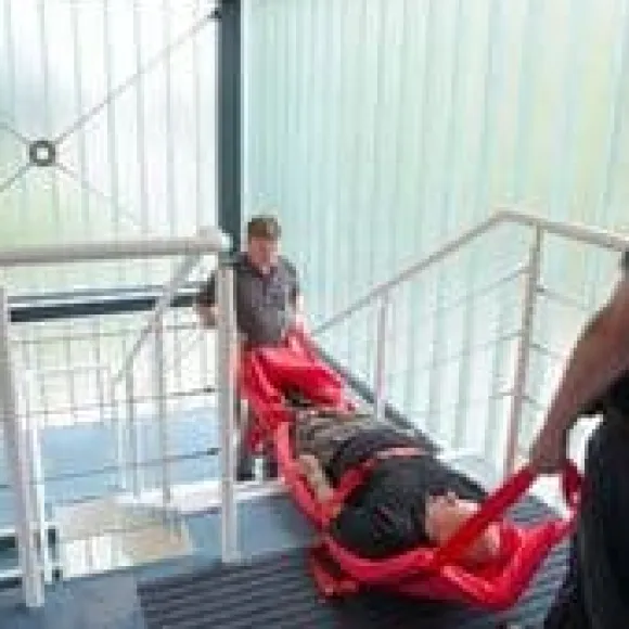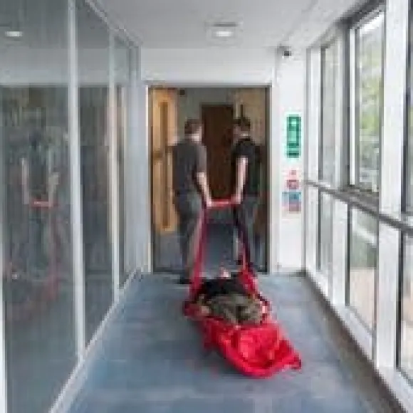 Räddningsmadrassen Premium Evacuslider är en kostnadseffektiv lösning för att säkert evakuera rörelsehindrade personer. Madrassen är helt justerbar, vilket gör det möjligt att evakuera såväl barn som vuxna. Den är tillverkad av ett tåkigt, enkelt att torka rent material och ger komfort och stöd på grund av den tjocka skummadrassen. Den integrerade fotfickan och 3 säkerhetssele hjälper till att säkra och stabilisera patienten. Den plana baksidan gör det också möjligt att transportera patienten horisontellt.