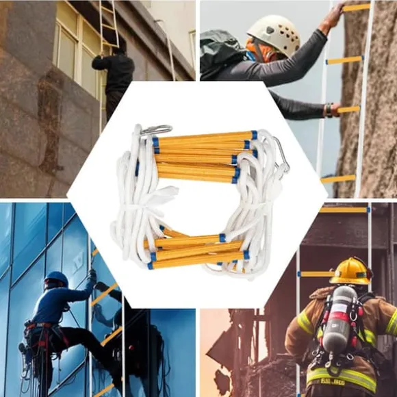 Säker och mångsidig räddnings-repstege i neon‑gulDenna robusta repstege är ett pålitligt val för hem eller kontor vid utrymning och fungerar även för träning, utomhusbruk och lek. Hållbara material och smart design ger tryggt fotfäste – i väl synlig neon‑gul färg.