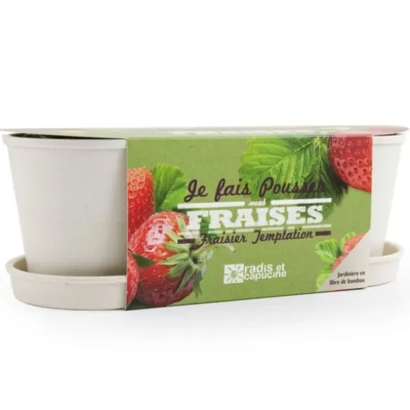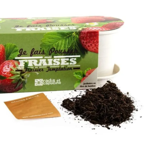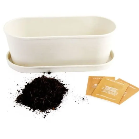 Frön för att så och odla i ditt kök, på en fönsterbräda när det är fint väder. Planteringslådan är gjord av bambufibrer, ett material som är tillräckligt starkt för att hålla i flera år och som med tiden är helt biologiskt nedbrytbart. Varje kruka innehåller allt som behövs för att odla vilda jordgubbar.