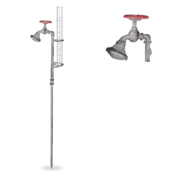 Denna regnmätare är utformad för att hjälpa dig enkelt övervaka små mängder nederbörd i din trädgård. Med en charmig vintage vattenkransdesign är den både dekorativ och funktionell, tillverkad av hållbara, väderbeständiga material för långvarig användning utomhus. Mätaren är enkel att installera med sitt skruvbara jordspett och lätt att tömma för smidig skötsel.