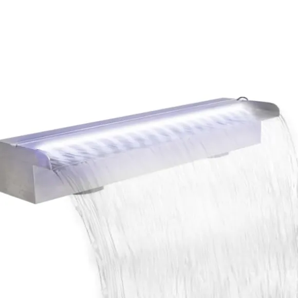 Den är särskilt utformad för att säkerställa ett konstant och jämnt flöde av vatten. Tillverkad av högkvalitativt rostfritt stål. Den är klorvattenbeständig samt mycket slitstark. Vattenfallet har LED-lampor och därmed en kontakt som ingår i leveransen. Monteringen är enkel.