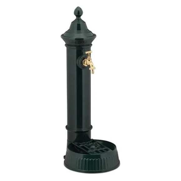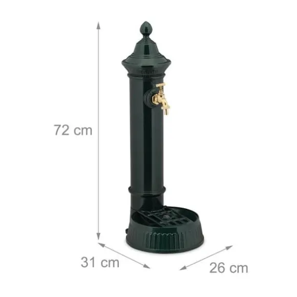 Ge din terrass eller trädgård en nostalgisk charm med denna dekorativa trädgårdsfontän med antik design. Oavsett om det är för att tvätta händerna efter trädgårdsarbete, vattna dina växter och blommor eller helt enkelt för rent dekorativa syften, kommer denna fontän att förföra dig. Fontänen har en praktisk kran och en liten behållare som kan stängas vid behov med hjälp av korken. Gitteret tillåter dig att placera dina vattenkannor, blomkrukor eller annat.