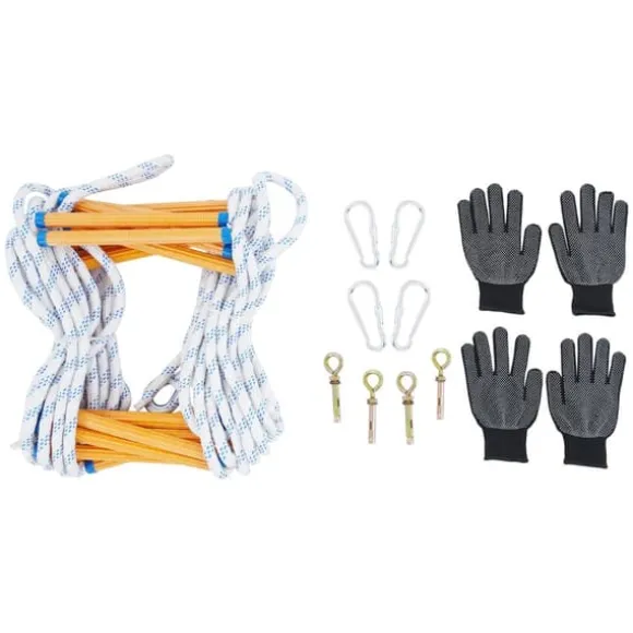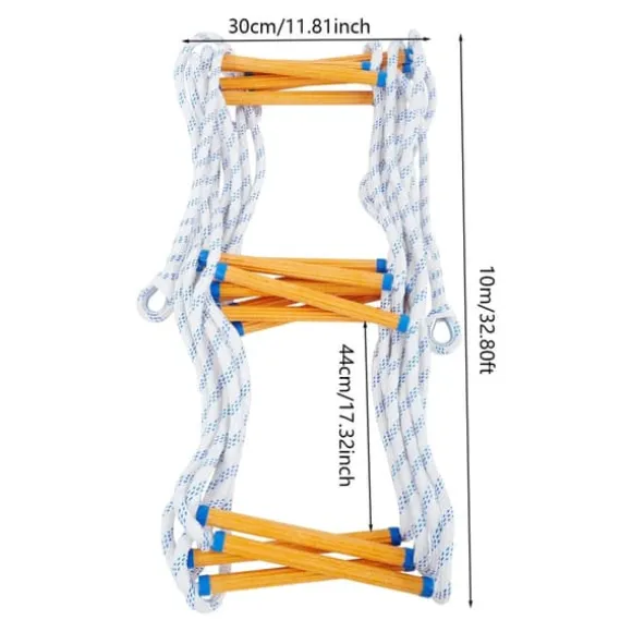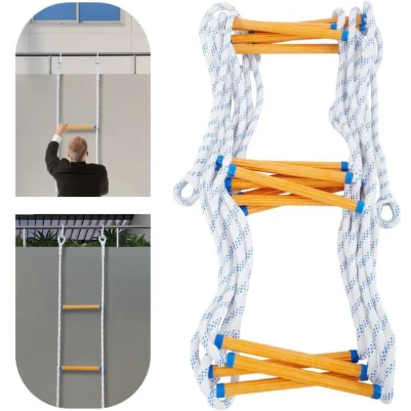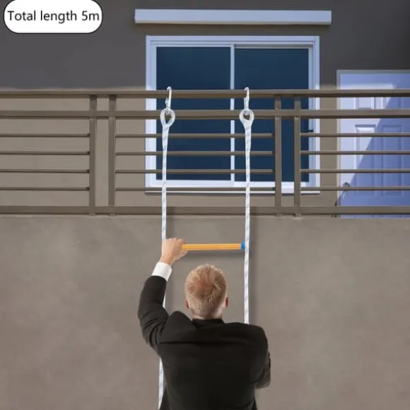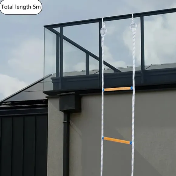 Säker räddningsrepstege för snabb utrymningDenna robusta repstege ger en trygg väg ut vid nödlägen. Med slitstarkt polyester och PE-omslutet rep, antihalk-sargar i harts och stabila krokar är den byggd för pålitlig användning. Denna variant har höjd 3,8 m, stegebredd 30 cm och bärkapacitet 100/120 kg.