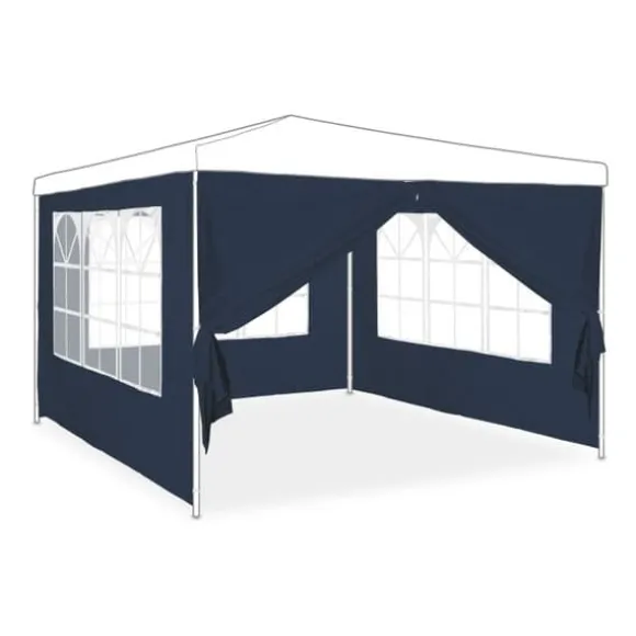 Denna uppsättning med fyra sidoväggar till ditt partytält skyddar dig från väder och vind, oavsett riktning. Ena sidan av väggen har en dragkedja, så att du snabbt kan komma i och ur. För att förhindra att det blir för mörkt släpper de tre fönstren in mycket ljus i ditt partytält. Setet är snabbt att montera och enkelt att ta bort med öglor. Väggens dragkedja har två extra rep för att fästa den öppna sidan vid partytältets stänger.