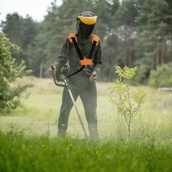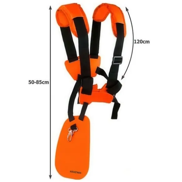 De mjuka axelskydden på remmarna kan justeras för att ge maximal komfort, vilket gör att största delen av vikten bärs av skydden och belastningen på överkroppen minskas. Denna sele gör arbetet med grästrimmer mycket mindre ansträngande och mer effektivt. Perfekt för både amatörer och professionella trädgårdsmästare som vill ha en smidig och bekväm trädgårdsupplevelse!