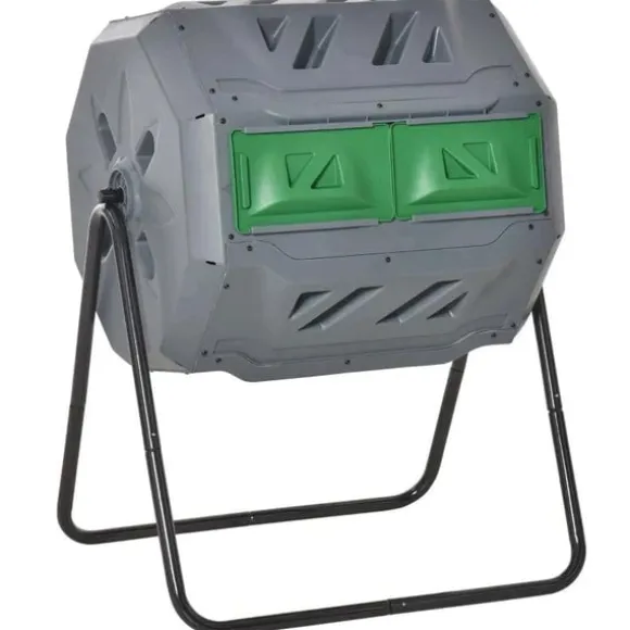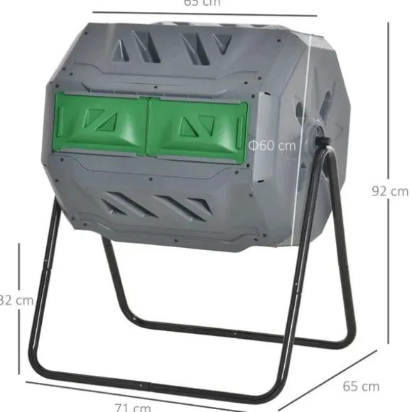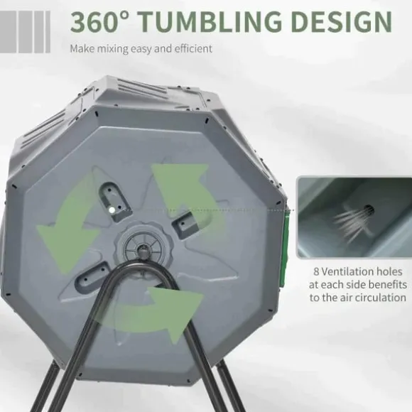 UTMÄRKT VENTILATIONSSYSTEM: 160L stor kompostbehållare med 8 ventilationshål på varje sida av trumman, som främjar luftcirkulationen och evakuerar den använda luften och vattnet.