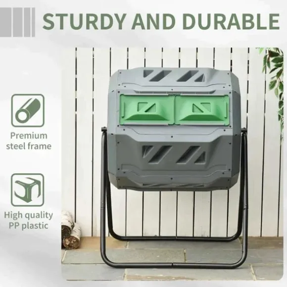 U-FORMAD STÅLRAM: Denna kompostbehållare är gjord av högkvalitativt stål och polypropenplast, robust och hållbar för långvarig användning. Denna kompostmaskin kommer med praktiska skjutdörrar.