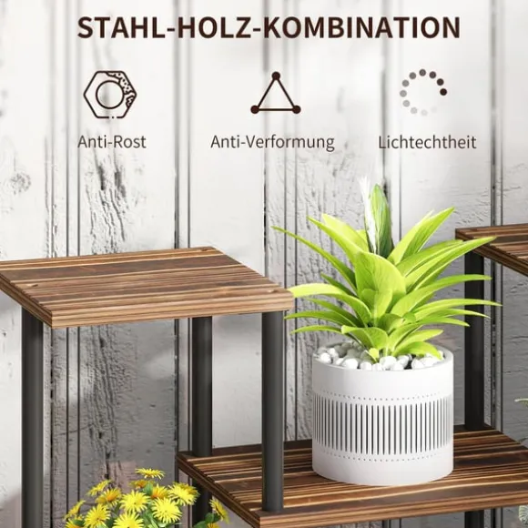 ROOTZ fyrstegsanläggningen står vackert blandar funktion och stil. Denna eleganta planterare är tillverkad av en robust metallram och fast gran och höjer dina gröna vänner. Med sin kompakta design är den perfekt för trånga utrymmen i vardagsrum eller balkonger, vilket effektivt visar upp olika växter samtidigt som golvyta.