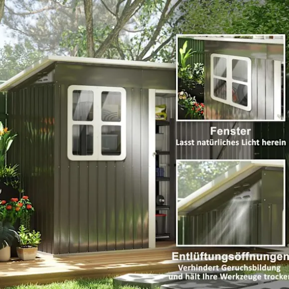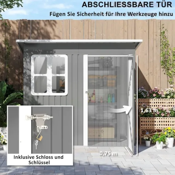 Förbättra ditt utomhusutrymme med Rootz Garden Shed, utformad för hållbara lagringsbehov. Detta trädgårdshus har ett transparent fönster för naturligt ljus, effektiva ventilationsplatser och ett säkert låssystem, vilket säkerställer att dina trädgårdsverktyg lagras säkert.