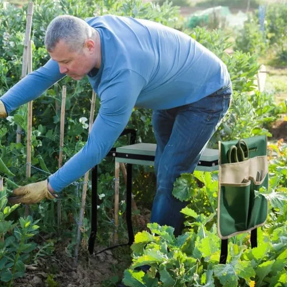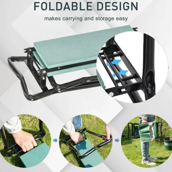 Vår praktiska trädgårdsknäljare är det perfekta tillbehöret för alla trädgårdsmästare. Den ergonomiska designen förhindrar ömma knän, hjälper dig att stå upp och ger en bekväm plats att sitta på. Två 1,8 cm bekväma kuddar skyddar dina ömma knän och armstöden gör det lättare att resa sig. Genom att vända den får du en bekväm sits som är tillräckligt hög för att du enkelt ska kunna stå upp och sitta på, men tillräckligt låg för att placera dig på rätt höjd för många olika trädgårdsarbeten. Den lätt hopfällbara designen gör den lättare att bära och förvara.