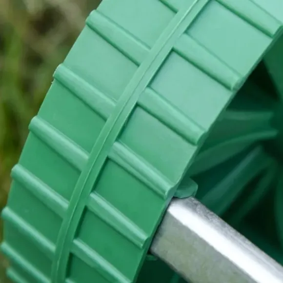 HÅLLBAR: Vår luftare är gjord av slitstarkt stål, smidigt och stabilt. De rullande delarna på båda sidor är gjorda av plast, flexibla och minskar totalvikten vid arbete.