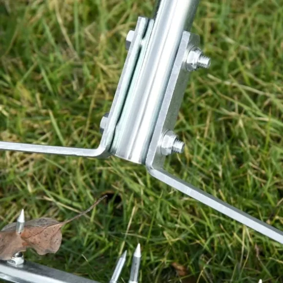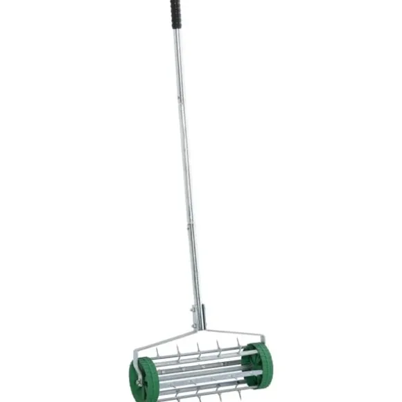 Denna gräsmatta luftare från Rootz för din gräsmatta är ett perfekt tillbehör för att hjälpa gräsmattan att ta emot näring. Med regelbunden luftning blir din gräsmatta friskare och vatten dräneringen kommer att förbättras. Handtaget kan justeras i 3 lägen, och välten har även roterande spikar för att gräva ner i marken. Tillverkad av galvaniserade metallrör och plast, är det ett utmärkt verktyg för att få ut det mesta av din gräsmatta.