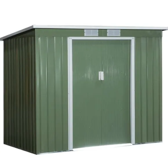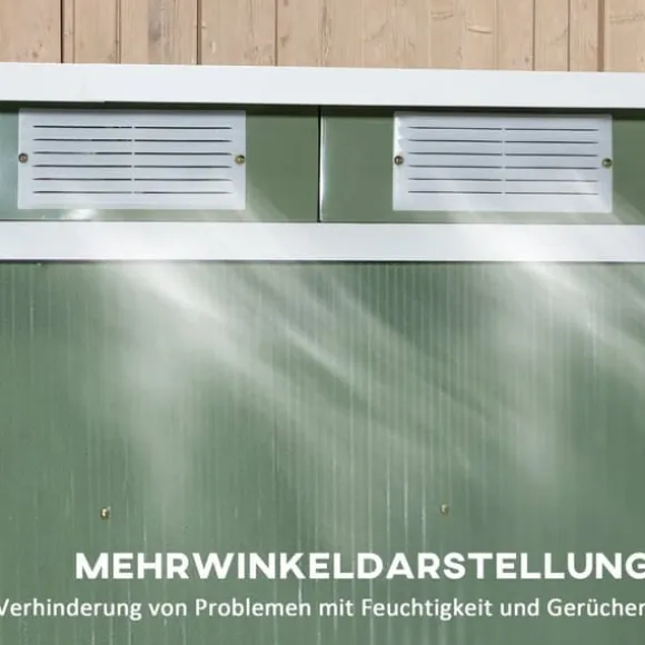 tillverkat av högkvalitativt galvaniserat stål, detta verktygsbod säkerställer hållbarhet och skydd för dina trädgårdsverktyg. Det sluttande taket förhindrar vattenansamling, medan ventilationsfönstren upprätthåller ett nytt inomhusklimat.