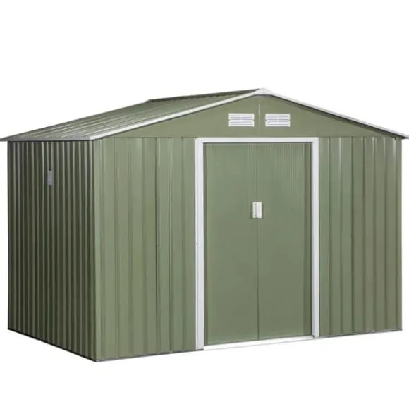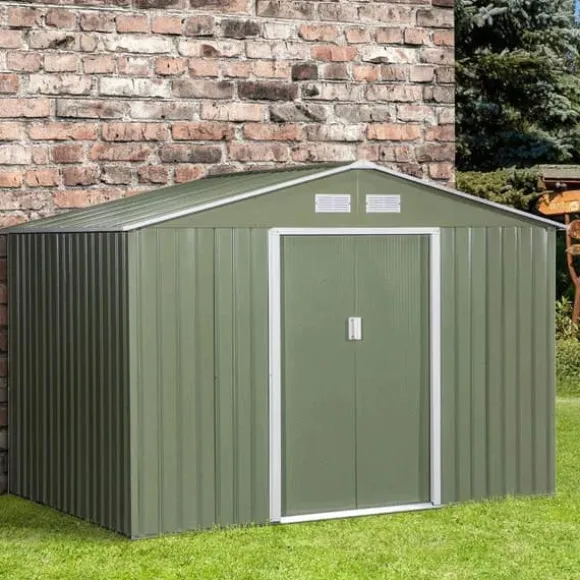 - Dubbla skjutdörrar för enkel åtkomst till detta förvaringsskjul i metall