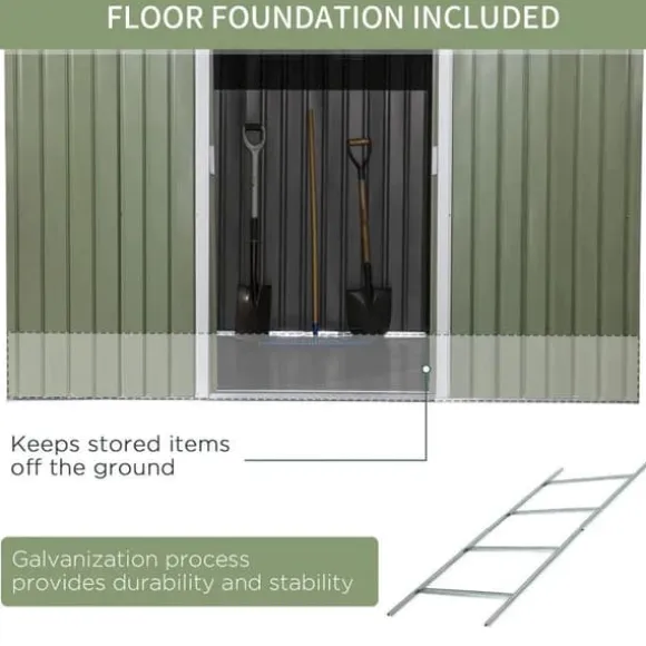 - Rymlig nog för att förvara alla dina utomhusredskap, utrustning och trädgårdsredskap i detta galvaniserade skjul