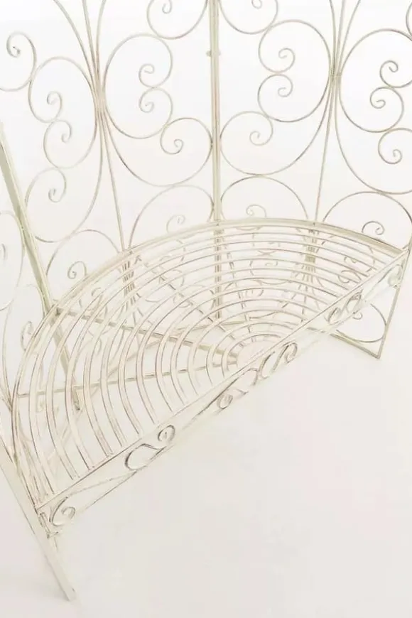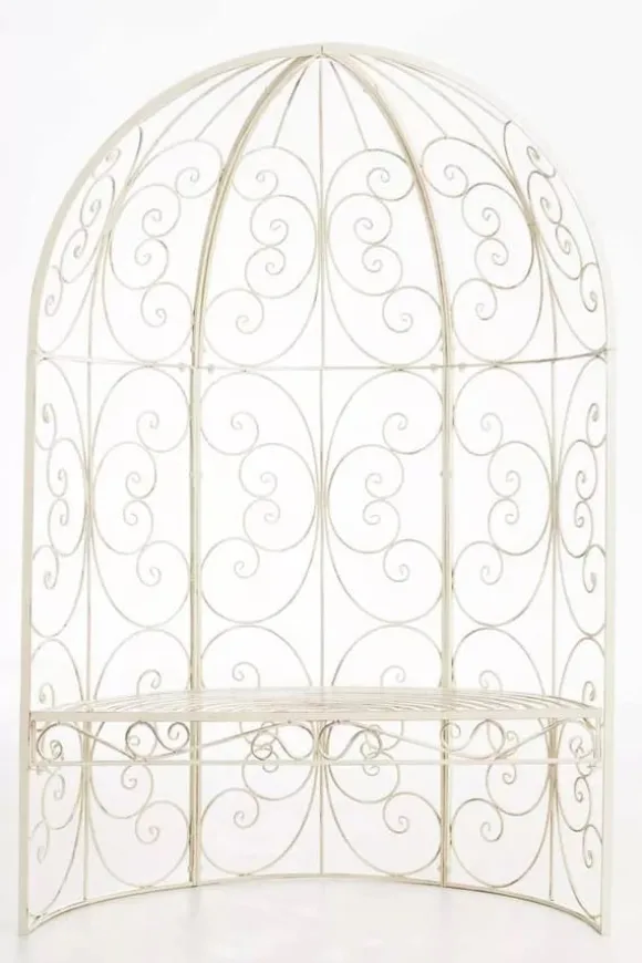Do you want to unwind in your garden and simply enjoy the evening? Our Rosie pavilion with a bench makes it possible. It has an elegant design and simultaneously serves as an ideal trellis for climbing plants such as roses or ivy. Once densely covered, it looks simply stunning. The charming embellishments make it an absolute eye-catcher. The half arch is handcrafted from iron and is therefore extremely sturdy. The powder coating ensures high quality and extreme durability, so you will enjoy it for a long time.