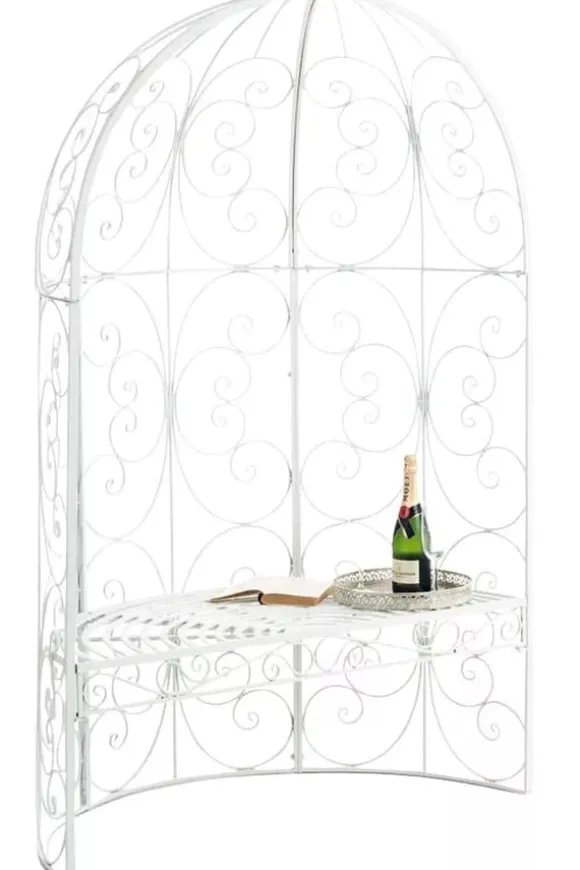 Do you want to unwind in your garden and simply enjoy the evening? Our Rosie pavilion with a bench makes it possible. It has an elegant design and simultaneously serves as an ideal trellis for climbing plants such as roses or ivy. Once densely covered, it looks simply stunning. The charming embellishments make it an absolute eye-catcher. The half arch is handcrafted from iron and is therefore extremely sturdy. The powder coating ensures high quality and extreme durability, so you will enjoy it for a long time.