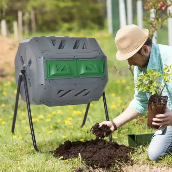 – 360° roterande system: Inget blandande och grävande i din komposthög med verktyg. Denna kompostbehållare är ett mer effektivt sätt att producera kompost. Fyll behållaren med köks- och trädgårdsavfall, stäng luckan och vänd den varannan dag.