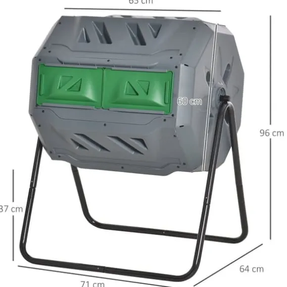 – Utmärkt ventilationssystem: 160 liters kompostbehållare med 8 ventilationshål på varje sida av trumman, som främjar luftcirkulationen och leder bort förbrukad luft och vatten.