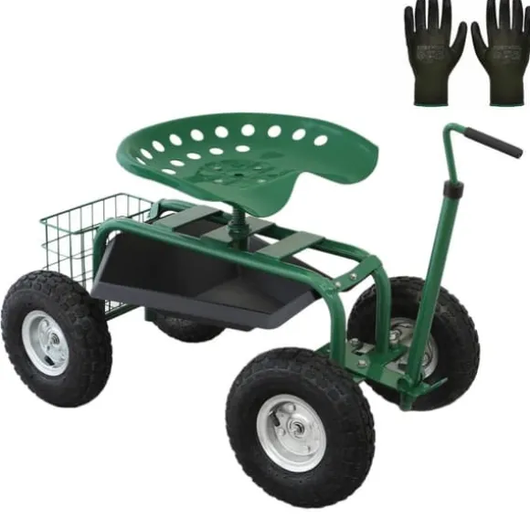 Ha alltid dina verktyg och frön nära till hands med den praktiska verktygskorgen och brickan bak på stolen. Med en kapacitet på 150kg kan du förvara alla dina prylar. Som en extra bonus har vi inkluderat ett GRATIS par trädgårdshandskar för att skydda dina gröna fingrar!