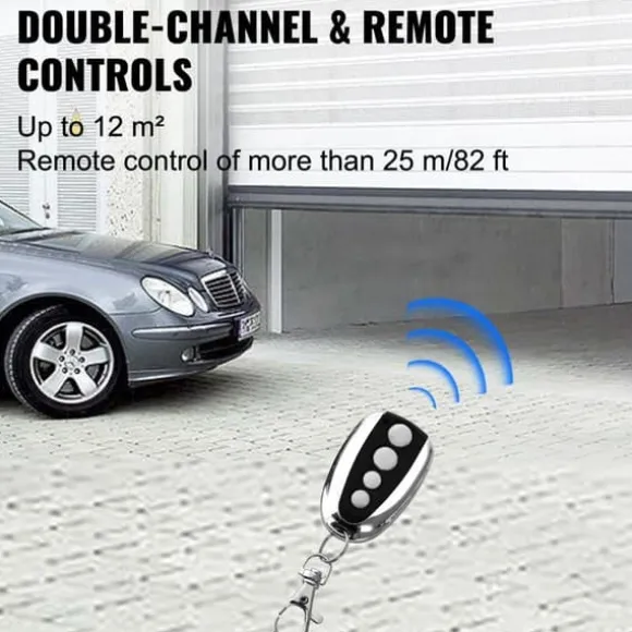 ENKEL ANVÄNDNING – Vår automatiska portöppnare levereras med två stycken tvåkanals trådlösa fjärrkontroller. Fjärrkontrollens räckvidd kan nå 25 till 35 meter (50 meter i öppna områden).