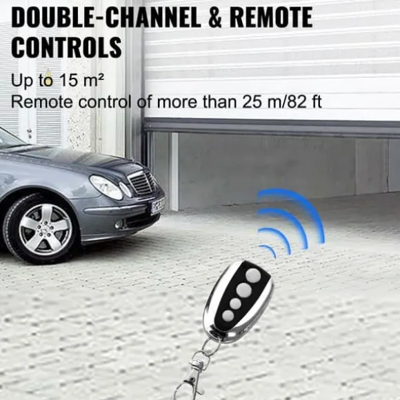 ENKEL ANVÄNDNING – Vår automatiska portöppnare levereras med två stycken tvåkanals trådlösa fjärrkontroller. Fjärrkontrollens räckvidd kan nå 25 till 35 meter (50 m i öppna områden).